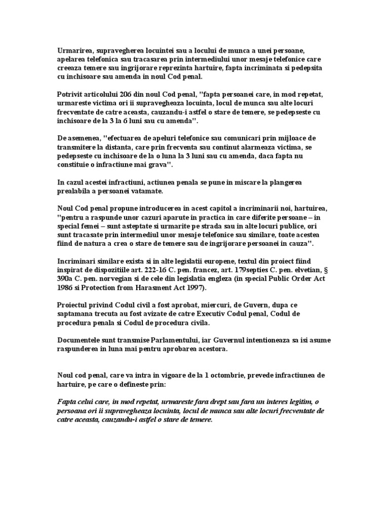 Loviri sau alte violente, vatamare corporala din culpa, amenintare, hartuire, viol (art. Mai mult decat atat, va oferim suportul juridic necesar pentru a redacta orice model de plangere penala. Vreau un model de plangere penala catre procuror din cadrul parchetului pentru faptede amenintare cu viol moarte hartuire răspunde nitulica gheorghe 15 noiembrie 2019.