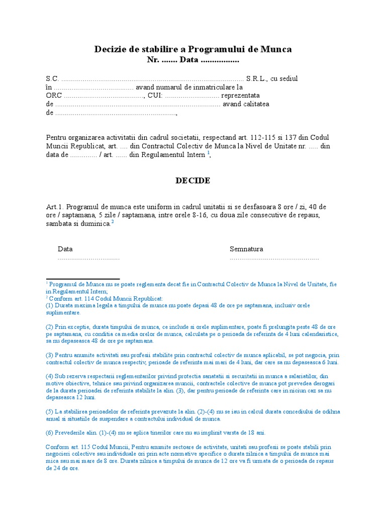 vizitati articolul complet aici : https://www.yumpu.com/en/principala Program de lucru modificat de la 8 ore/ zi la 9 ore/zi. Raport de activitate activităţi şi servicii desfăsurate. ~salariu porneste de la 2600 ron net;