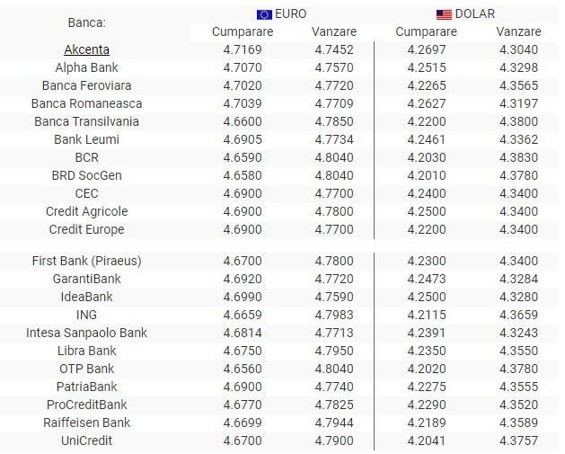 Vezi cursului valutar si pentru bancile.